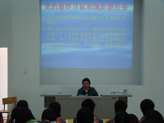 学习小组邀请了老党员、电气工程系系主任邱老师给同学们上党课。邱老师向所有学员介绍了党章的基本知识,入党申请书的写法,以及如何撰写入党申请书、入党申请书的提交程序等。她说,写入党申请书之前,一定要想好,自己为什么要入党,理清入党动机,不能有不健康的思想,还要思考清楚入党后如何打算。同时她还要求,党章学习小组成员要在学习、生活中起到先锋模范作用,不仅要从思想上入党,还要从行动上入党,接受组织的考验。