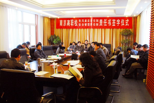 潘东标校长和吴仲华书记在与各系部负责人签定责任书后分别发表讲话,要求全校领导干部要严格抓好党风廉政、安全管理工作,加强内涵建设,为构建和谐文明的校园环境和争创国家级示范性职业学校提供有力保障。