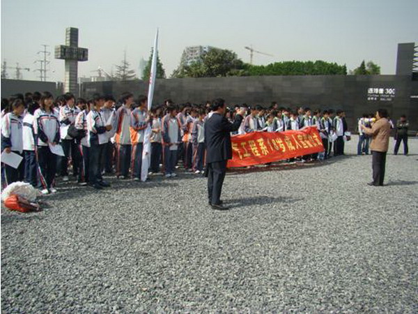 邱海霞主任在宣誓仪式上为同学们致词,希望同学们做一名有责任、讲诚信、好学习、爱运动的公民。校党委委员、党章学习小组指导教师朱文继,党章学习小组成员陈婧也先后发言。随后,党章学习小组的师生们共同参观了南京大屠杀遇难同胞纪念馆。在组织游人举行签名活动时,学员们纷纷在横幅上郑重签下自己的名字,并表示珍惜来之不易的和平,认真学习科学文化知识,以文明的言行为北京奥运加油,为祖国争光。