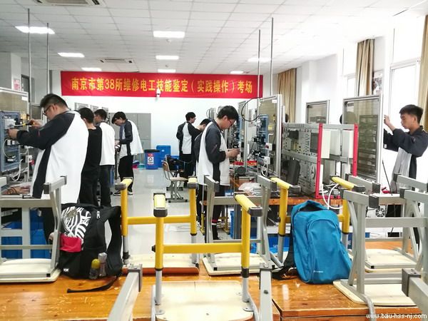 2018年5月5日上午八点,电气系电气自动化技术专业14级高职班和基础部电气技术应用专业16级3+4班,在新大楼PLC实验室(E203)和检测与传感器(E201)两个实验室举行2018年上半年《维修电工》高级、中级职业资格实践操作技能鉴定工作。电气自动化技术专业514211、514212、电气技术应用专业316521三个班级共115名同学参加此次技能考核。考前培训及赛场准备工作由电气自动化教研室承担。此次技能鉴定工作由南京市人社部门统一组织,第三十八技能鉴定所负责实施,市人社部门安排考评员进行技能鉴定考评。