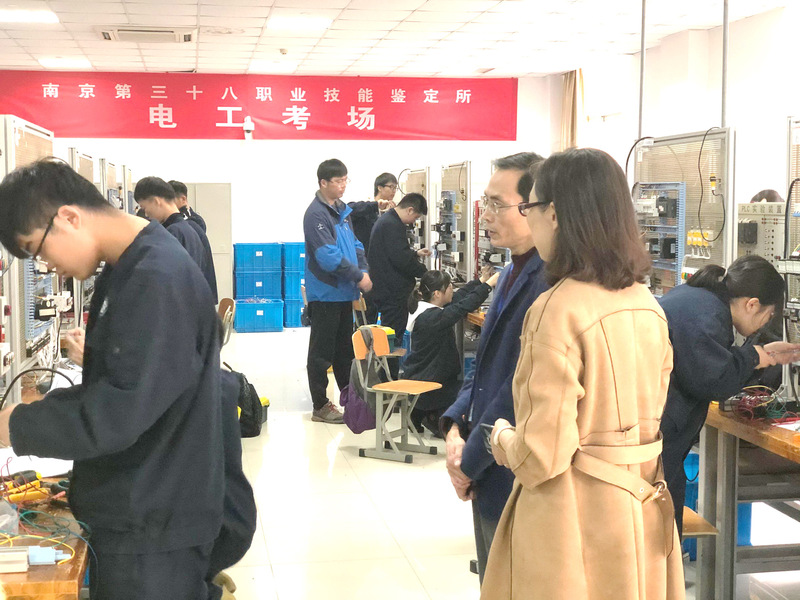 2019年11月23日上午八点,电气技术应用专业317521班在新大楼PLC实验室(E203)举行电工中级工职业资格技能鉴定工作。考前培训及考场准备工作由自动化教研室和电子教研室联合承担。此次技能鉴定工作由南京市人社部门统一组织,第三十八技能鉴定所负责实施,市人社部门安排考评员进行技能考评。当天上午,人社局相关领导和专家亲自到考工现场巡视、指导技能鉴定工作,对现场安排表示满意,并希望下一步能够引入社会人员培训鉴定。