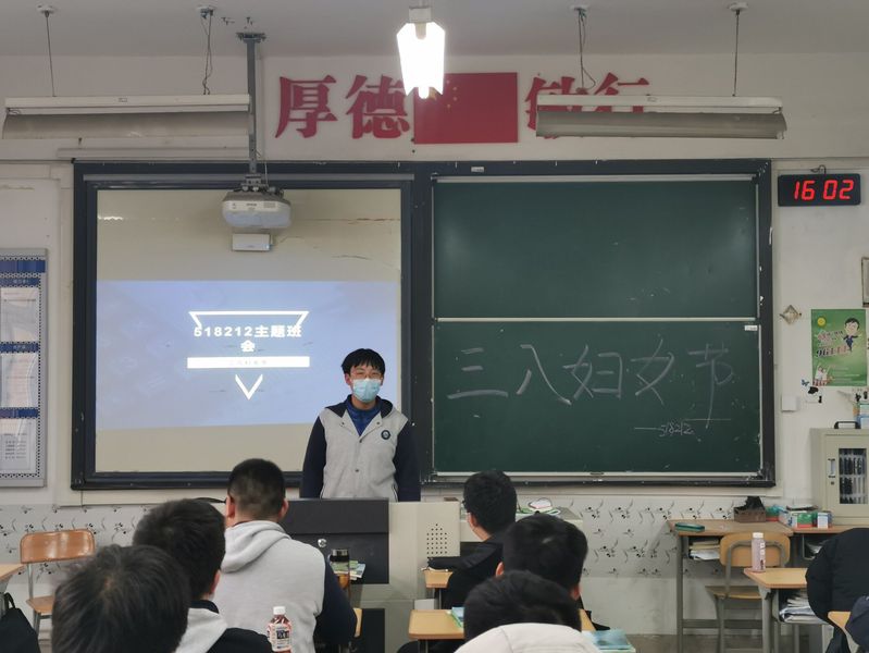 本次班会由518212班的宣传委金典主持,金典同学用ppt的形式,从三个方面:妇女节的来历,妇女节的意义和有关妇女节的名言,充分的向大家展示了妇女节的重要性。首先金典同学介绍了妇女节的意义,让同学们了解到这个节日是为庆祝妇女在经济、政治和社会等领域做出的重要贡献和取得的巨大成就而设立的节日,日期为每年公历的3月8日。其次金典同学介绍了妇女节的来历,同学们也学习到了一些历史知识和那句著名的口号“面包与玫瑰”。接下来,金典同学介绍了不少的名言,其中同学们对“我的生命是从睁开眼睛,爱上我母亲的面孔开始的”这句尤为感动,大家都加深了对妇女节的理解。最后金典同学放了一段视频,更加生动的表现了妇女节对女性的重要以及男女平等的共识。