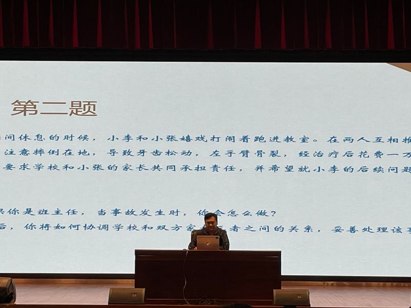 5月19日下午3:50于行政楼四楼报告厅举行本学期第三期校班主任大会,本次大会的主题结合班主任基本功大赛对班主任模拟情景答辩做案例分析,电气工程系黄春皓老师作为分享嘉宾为班主任老师们带去了《翻阅记忆里的情景,解读处置中的技巧》的讲座。