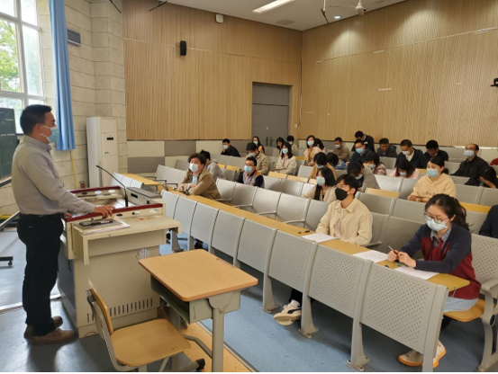 电气系全体61位教职工除技能大赛国赛在外地集训的老师外,全部在C1楼阶梯教室集合,张华军主任为大家认真解读新修订的《中华人民共和国职业教育法》。
