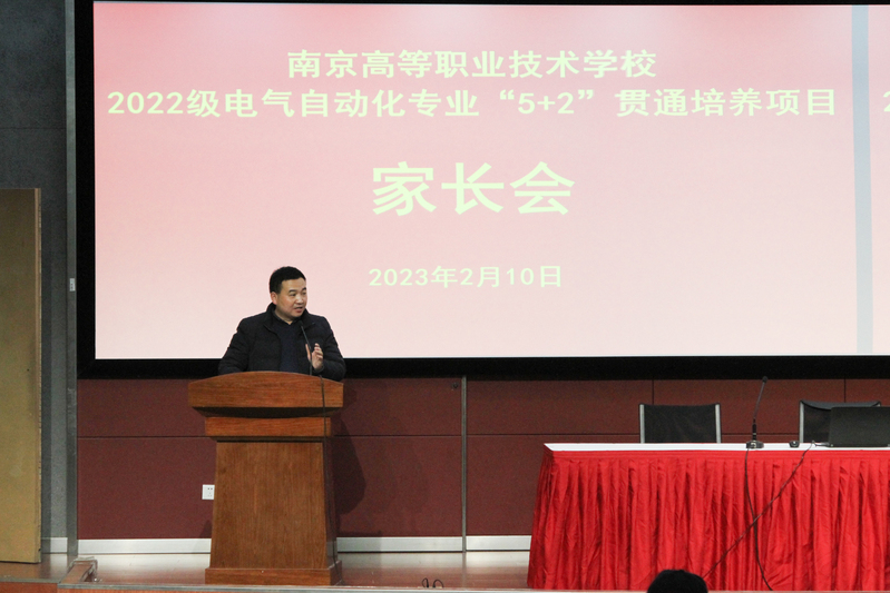 (bob手机客户端 v2.4.0 校网讯)为了进一步推进我校电气自动化技术专业“5+2”贯通培养项目工作,加强学校与家庭、教师与家长的沟通,于2023年2月10日下午在N502报告厅召开了2022级电气自动化技术“5+2”班家长会。会上向全体家长及学生解读了“5+2”贯通培养项目教学管理规定、学生工作管理规定和项目转段升学考核工作办法,并分享了数学和英语科目的学习方法。王旭副校长、教科部冯筠主任、基础部曹生让主任、谢丰副主任、电气工程系张华军主任、徐玉峰副主任、陈芳芳副主任、电气自动化教研室周刘喜老师、嵇朋朋老师、“5+2”项目班主任孔娉老师、数学课程德胜教授参加了此次家长会,张华军主任主持会议。