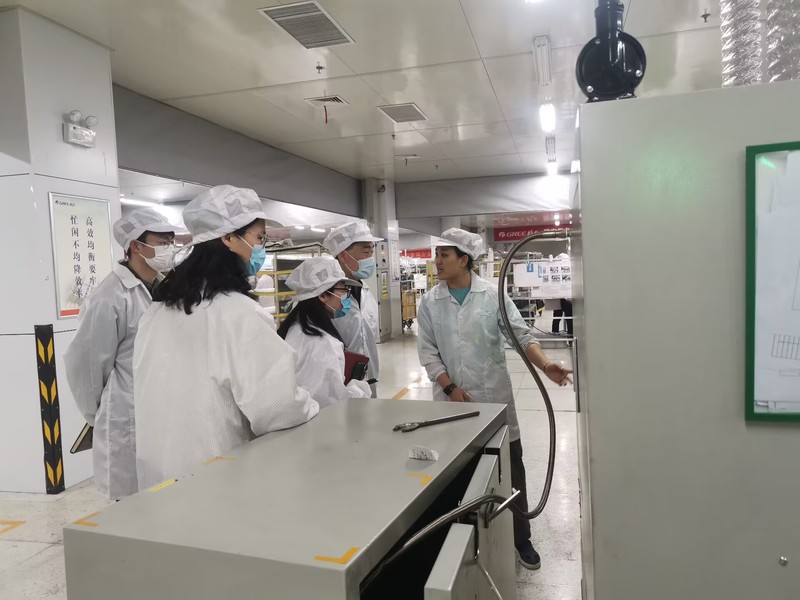 调研过程中招聘总监王鹏经理首先介绍了企业基本情况,接着带领教师们实地参观了一线生产车间,了解空调的生产工艺流程。教研室老师与企业专家陈工进行了积极交流沟通。校企双方同时希望在师资培训、学生实习就业、课程开发等各个方面架起合作桥梁,拉紧专业建设、协同发展的共同纽带。