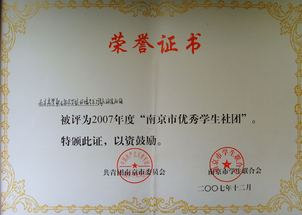 环艺系环保社团荣获2007年度"南京市优秀学生社团"