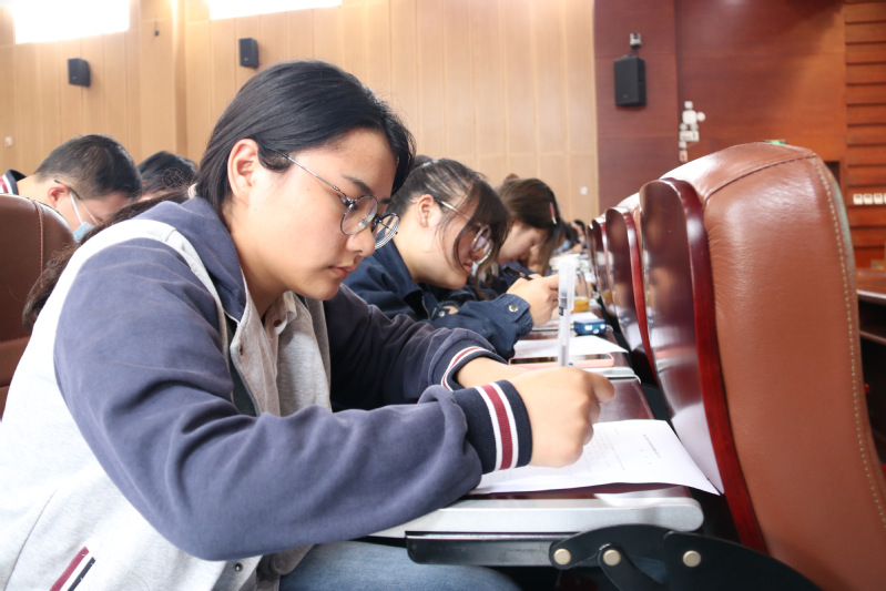 环艺系朱海涛副主任发表了一段关于此次竞赛的讲话后,同学们迅速安静了下来,等待发试卷。试卷一发下来,同学们就迅速拿起笔,低头答题。在长达30分钟的时间里,报告厅里鸦雀无声。结束后同学们安静有序的将试卷交给监考员。考试的结束,预示着给本次的知识竞赛画上了圆满的句号。