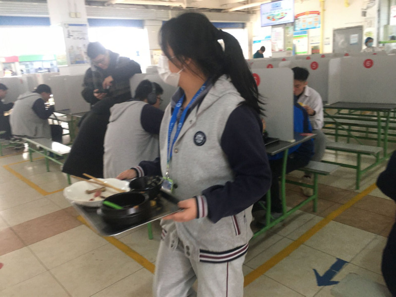 本次活动纯属自愿报名,卫生部的同学们积极报名,并按要求穿戴整齐、按时到达目的地——食堂。在所有人到齐后,部长宋小雯在食堂门口告诉了大家此次活动的详细内容——帮助叔叔阿姨们收拾餐盘,并合理分配了任务:宋小雯、朱升阳、朱玉航、倪健旸帮忙收餐盘,肖嘉怡、李梦雅负责拍照记录。