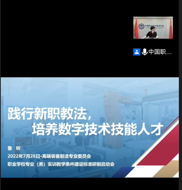鲁昕部长做了题为《践行新职教法,培养数字技术技能人才》的主旨报告,从“新职教法指引、数字经济举措、数字工业场景、数字素养培养”四个方面为职业学校专业(类)实训教学条件建设标准研制提出指导思想和具体要求。