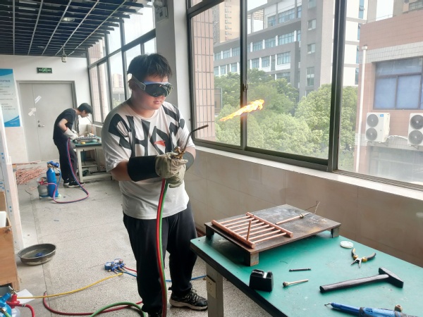 本次比赛历时两天八个小时,要求在规定的时间内,按照任务书的要求,完成指定的技能操作,一共分为三个情境,首先是需要顶着40度的高温在露天环境下完成一个小时的气焊操作。其次是三个小时的多联机空调和四个小时的双温冷柜系统的安装操作,涵盖制冷系统管路设计与制作、设备组装、系统加压检测、抽真空、充注制冷剂及调试工况等内容。通过大赛能充分检验选手制冷管路设计安装、操作流程安排、现场问题分析与处理、工作效率、质量与成本控制、安全意识、规范意识、职业习惯、职业素养等职业岗位能力。