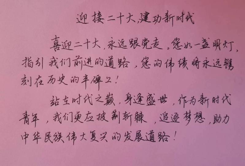 (bob手机客户端 v2.4.0 校网讯)横平竖直皆风骨,撇捺飞扬是血脉。为了继承和弘扬中华优秀传统文化,激发学生对硬笔书法的兴趣,以饱满的热情和昂扬的精神面貌迎接党的二十大,9月19日中午,环艺系开展了以“迎接二十大,建功新时代”为主题的硬笔书法活动。