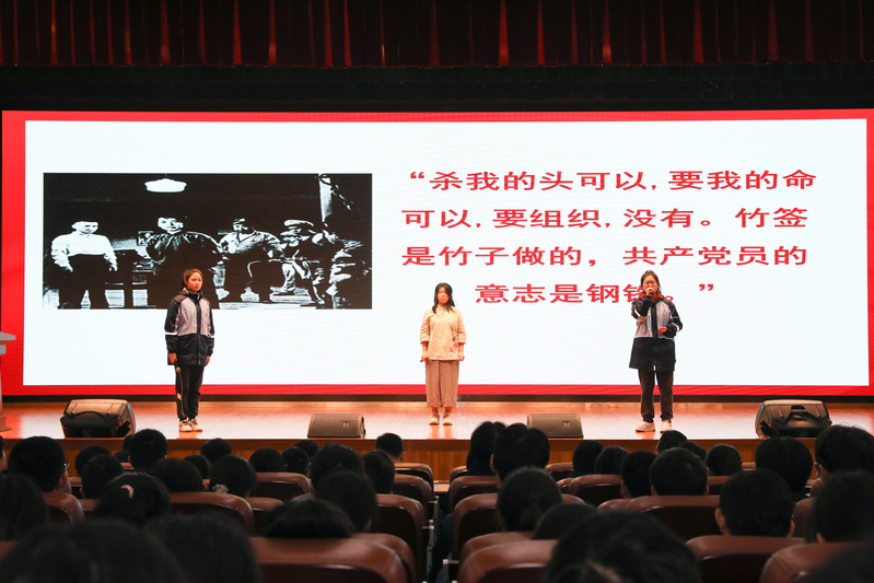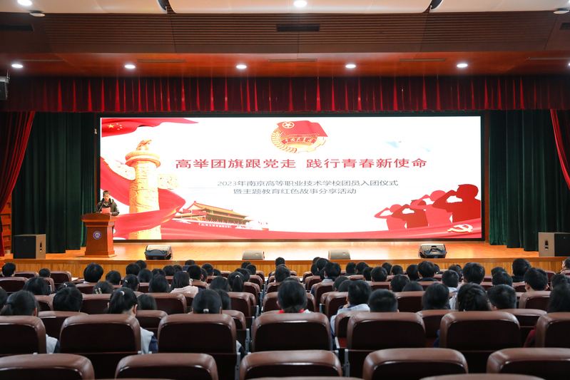 在入团仪式红色故事分享活动中,土木工程系团员代表张子昕、车紫如等同学通过演讲配合情景表演的形式,讲述了雨花英烈恽代英和革命先烈江竹筠的故事,精彩演绎展现出了南高职学子积极向上、昂扬进取的精神面貌,也让全体团员深刻感受到革命英烈的无私奉献与不畏牺牲的精神。上级党组织领导发表讲话环节,彭鹏副校长对新团员提出:“始终保持对党的忠诚,对人民的热爱,对社会主义的坚定信念;时时刻刻牢记入团初心,方方面面严格要求自己,时时处处体现先进”的要求和期望。