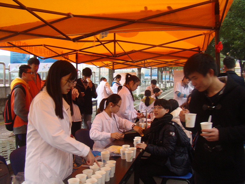 活动时间定于下午15:10。在此之前,我系学生会和金鸿志愿者协会在朱德成和江贝贝的带领下,为了活动的顺利开展,提前进行了十分周密且详细的安排和准备:各部门成员、志愿者提前到达主干道的活动地点,置办桌椅板凳;为来校的南中医同学做引导工作;帮助工作人员整理“义诊”时所需的材料和工具。