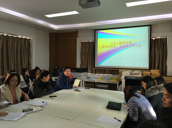 2019年1月22日下午2时整,土木工程系党支部全体党员齐聚在A209会议室,由支部书记张威同志主持召开了“土木工程系支部组织生活会、党员民主评议会”。