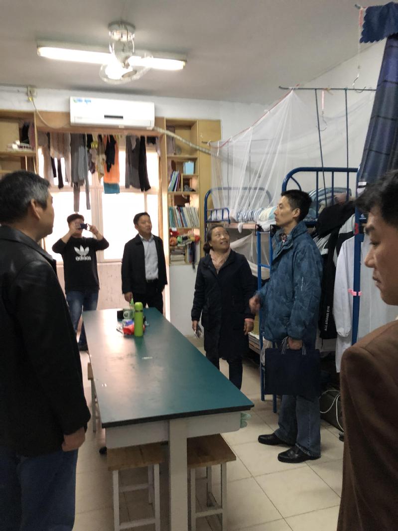 随后,考核小组实地查看了学校门卫、危化品实验室、宿舍、食堂等重点区域,随时询问工作人员相关情况,提出了几点需要整改的建议。临近中午,考核小组不辞辛苦,继续对文本资料及台账逐一查看。