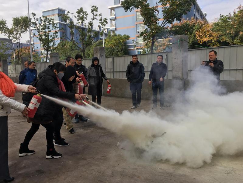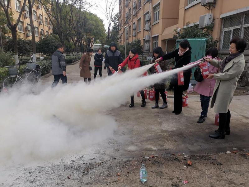 最后,全体宿管老师在室外进行消防知识培训及实际操作的时候。虽然天气寒冷,北风凛冽,丝毫不影响宿管老师们的学习积极性。大家认真听取专业人员的讲解,从介绍灭火器的性能到使用方法,大家都听得聚精会神。到了实际操作阶段,大家都跃跃欲试,争取把操作重点做标准做到位,因为这些都是宿管人员必须具备的专业技能。