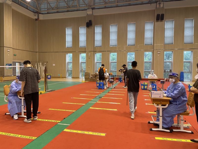 因必须在72小时内查看结核菌素皮试检测结果,在报到当天完成基本手续后,由班主任带队,学生志愿者手举班牌引导新生分批定点到学校体育馆查看结核筛查结果后现场同步完成一次核酸检测。各系部根据学校安排,于8月31日下午召开主题班会、家长会等形式围绕校情校史介绍、学生管理要求、新生入校的心理调适、学法指导等内容开展新生入学教育,培养学生的爱国报国之志和爱校荣校热情,并做好新生信息统计,开展新生情况了解和军训准备工作。(文:学工部唐丹图:唐丹审核:秦滔)