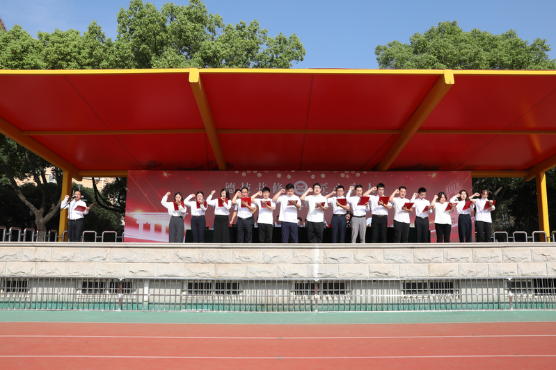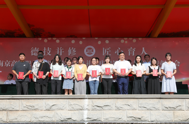栉风沐雨三十载,满园桃李书芳华,校长杨正民和校党委书记唐云清为从教三十年教师颁发荣誉证书和鲜花。丹心育桃李,奋进新征程,南京市第十五届师德标兵秦滔带领15名新教师庄严宣誓,郑重承诺履行教师职责、落实教师誓词,忠诚人民的教育事业!